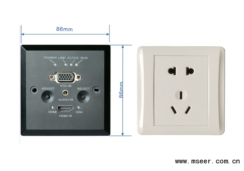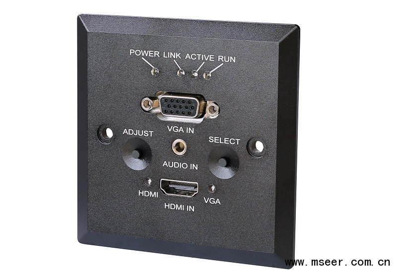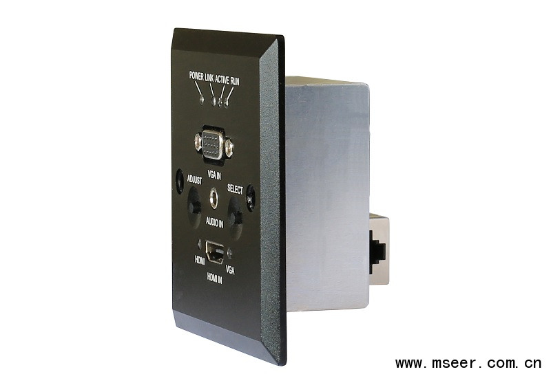本系列產(chǎn)品包括標準86型接口器模塊(可以墻插和地插形式安裝)及桌面接口器(桌插)兩種類型。具備HDMI和VGA兩路輸入自動選擇(HDMI優(yōu)先)之功能,并轉(zhuǎn)換成HDbaseT信號發(fā)送輸出,可通過單根CAT5電纜將HDMI或VGA的視頻、音頻信號中的任意1路最遠發(fā)送至100m遠的接收端。它可將輸入的模擬視頻及音頻信號數(shù)字化,實現(xiàn)數(shù)字高清信號的遠距離無損傳輸,采用運端PoL供電技術、方便安裝布線。